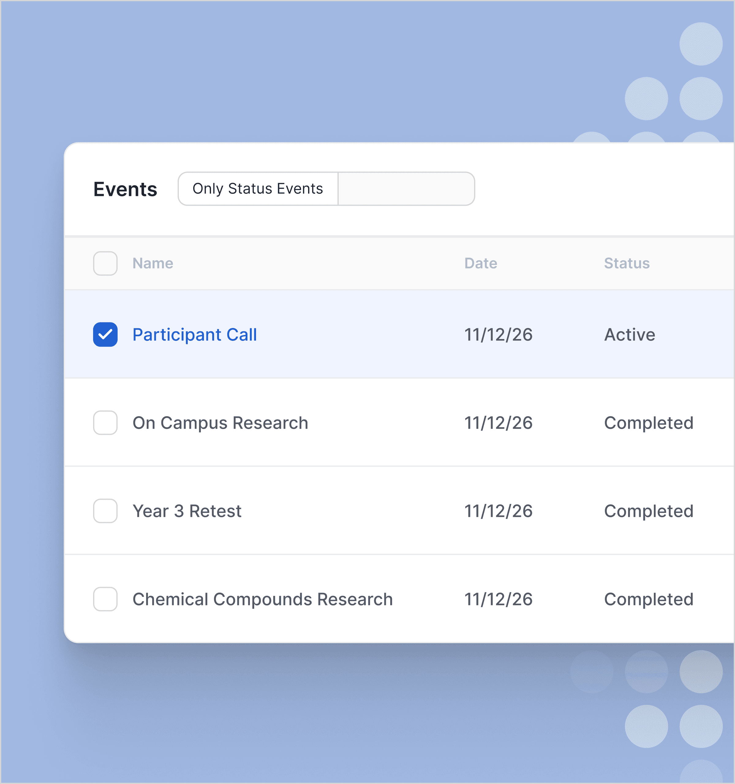 Monitor participant progress and milestones at a glance